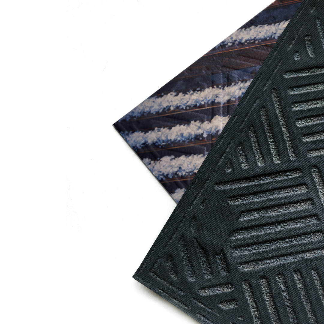 Poznaj elegancką i praktyczną wycieraczkę z nadrukiem, wykonaną z gumy pochodzącej z recyklingu.