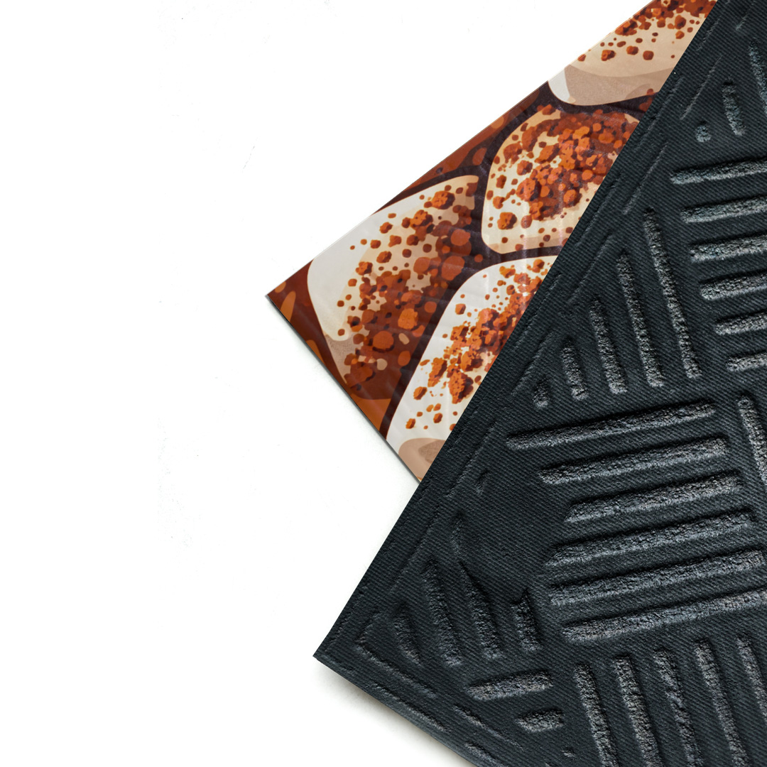 Poznaj elegancką i praktyczną wycieraczkę z nadrukiem, wykonaną z gumy pochodzącej z recyklingu.